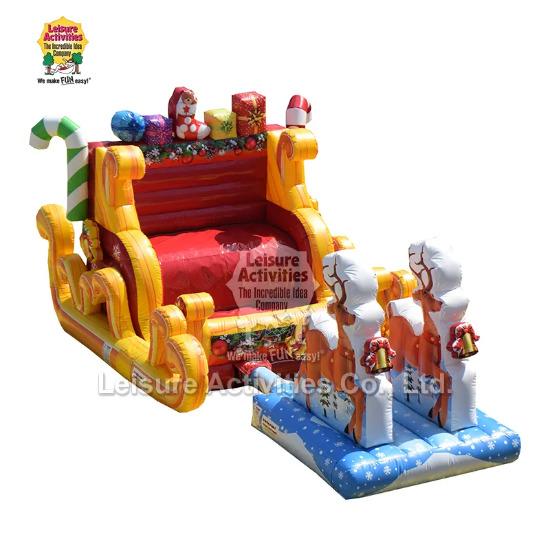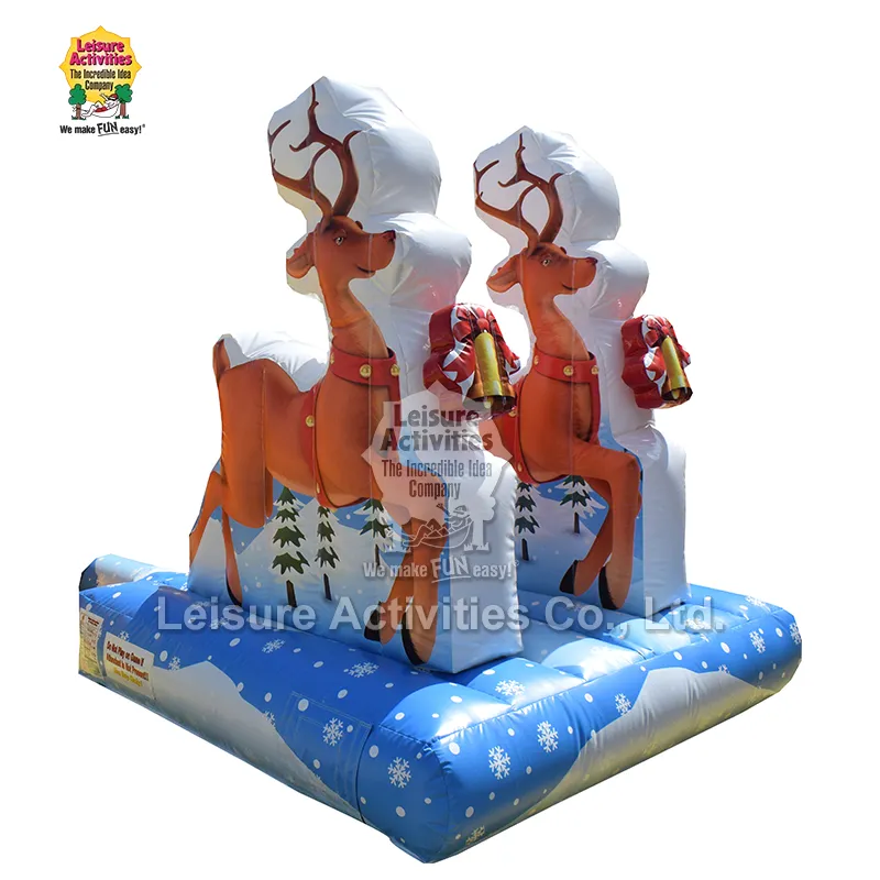 Leisure Activities® е професионален производител и доставчик на надуваеми продукти. Надуваема селфи шейна на Дядо Коледа с елени е надуваемо оборудване за декориране на снимки, специално проектирано за коледния сезон. Той разполага с основен дизайн на шейната и елените на Дядо Коледа, с акцент върху функционалността за правене на празнични снимки. Изработен е от висококачествени материали и е безопасен и съвместим.