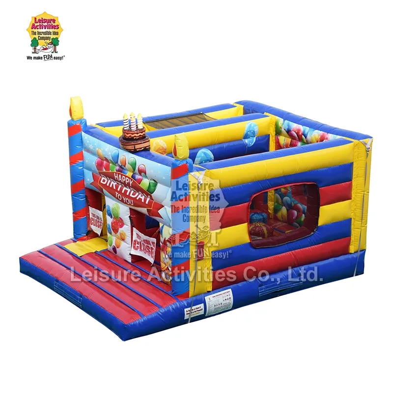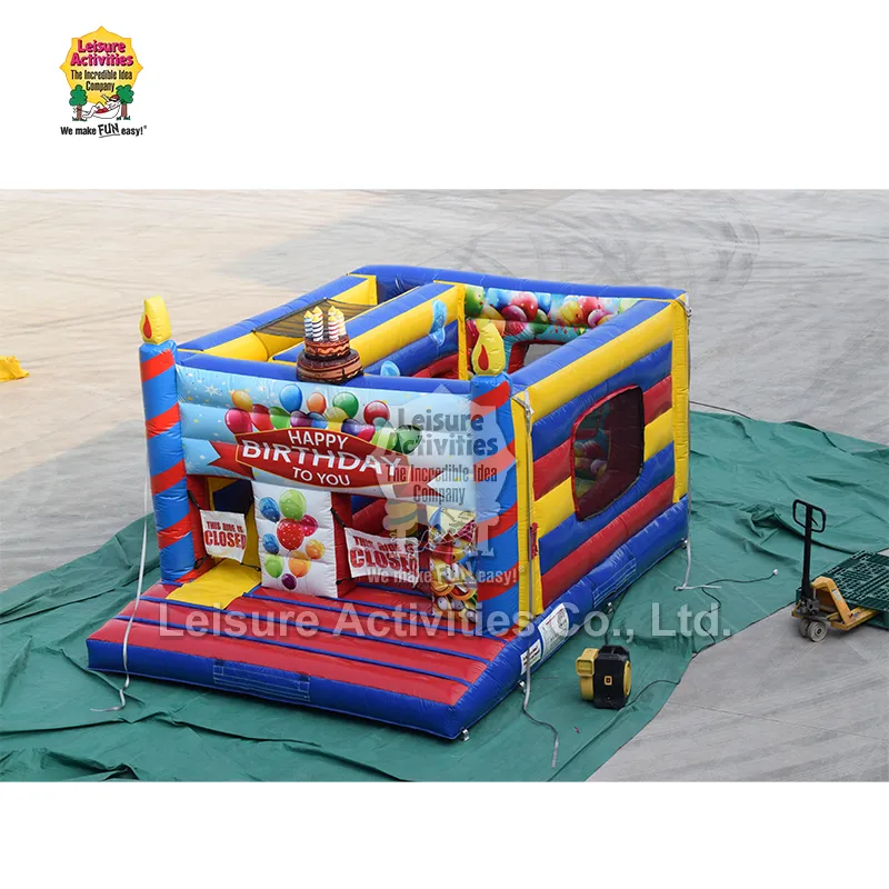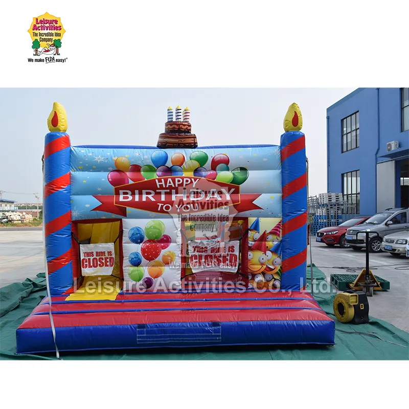 Leisure Activities® е професионален производител и доставчик на надуваеми продукти в Китай с над 30 години опит в надуваемата индустрия. Стандартните надуваеми надуваеми замъци Bouncy Castles Happy Birthday са независимо разработени и произведени от нас. Той е съсредоточен около цветен дизайн на тема за рожден ден, като се вземат предвид както безопасността, така и забавлението, и е специално проектиран за различни рождени дни и детски дейности.